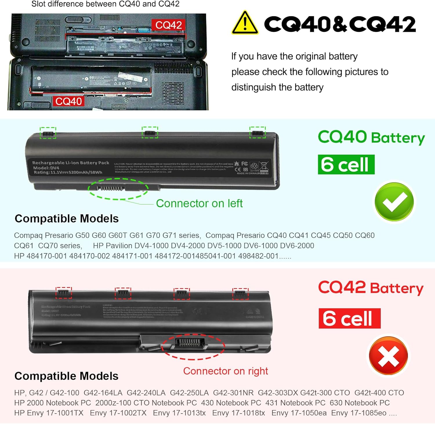 - Nuevo Batería 58 whr para HP portátil batería 484170-001 para HP pavilion DV4 DV5 compaq presario CQ40 CQ45 CQ50 CQ60 CQ70 CQ61 G50 G60 G71 reemplazo del portátil hstnn-lb72 48500 41-00 1 485041-002 498482-001.