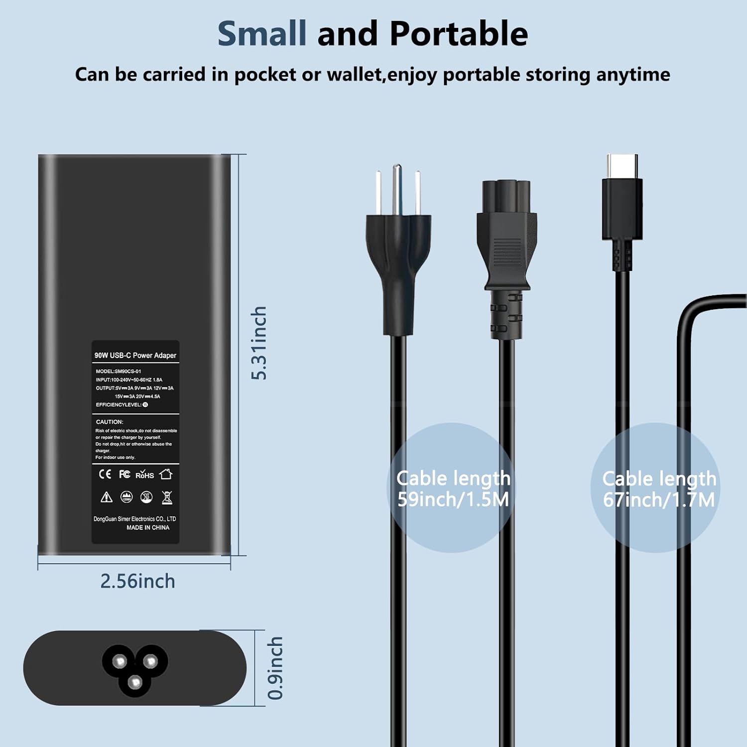 - Detalles técnicos: Entrada: 100V-240V 1.5A 50-60Hz; Salida: 5V/3A, 9V/3A, 15V/3A 20V/4.5A Potencia: Max 90W y compatible 29W 30W 45W 65W. Tipo: Tipo C USB C; Longitud del cable: 6FT LO QUE OBTIENES: 1x 90W USB Tipo-C Adaptador de corriente Compatible con Dell, 1x cable de alimentación de CA